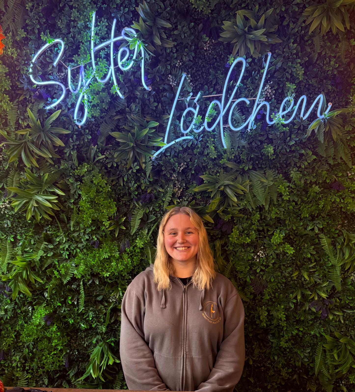 Emily ist seit Februar 2023 Teil unseres Lädchen-Teams und unsere allererste Auszubildende im Unternehmen. Im Sommer 2024 legte sie erfolgreich ihre Prüfung zur Verkäuferin ab und befindet sich nun im letzten Abschnitt ihrer Ausbildung zur Kauffrau im Einzelhandel. Mit ihrer quirligen und kommunikativen Art bringt Emily täglich frischen Schwung in unser Team. Ihr strahlendes Lächeln und ihre freundliche, hilfsbereite Art machen jeden Einkauf für unsere Kunden zu einem besonderen Erlebnis. Emily ist eine echte Bereicherung für unser Team und hat als unsere erste Auszubildende einen besonderen Platz in unserer Geschichte.