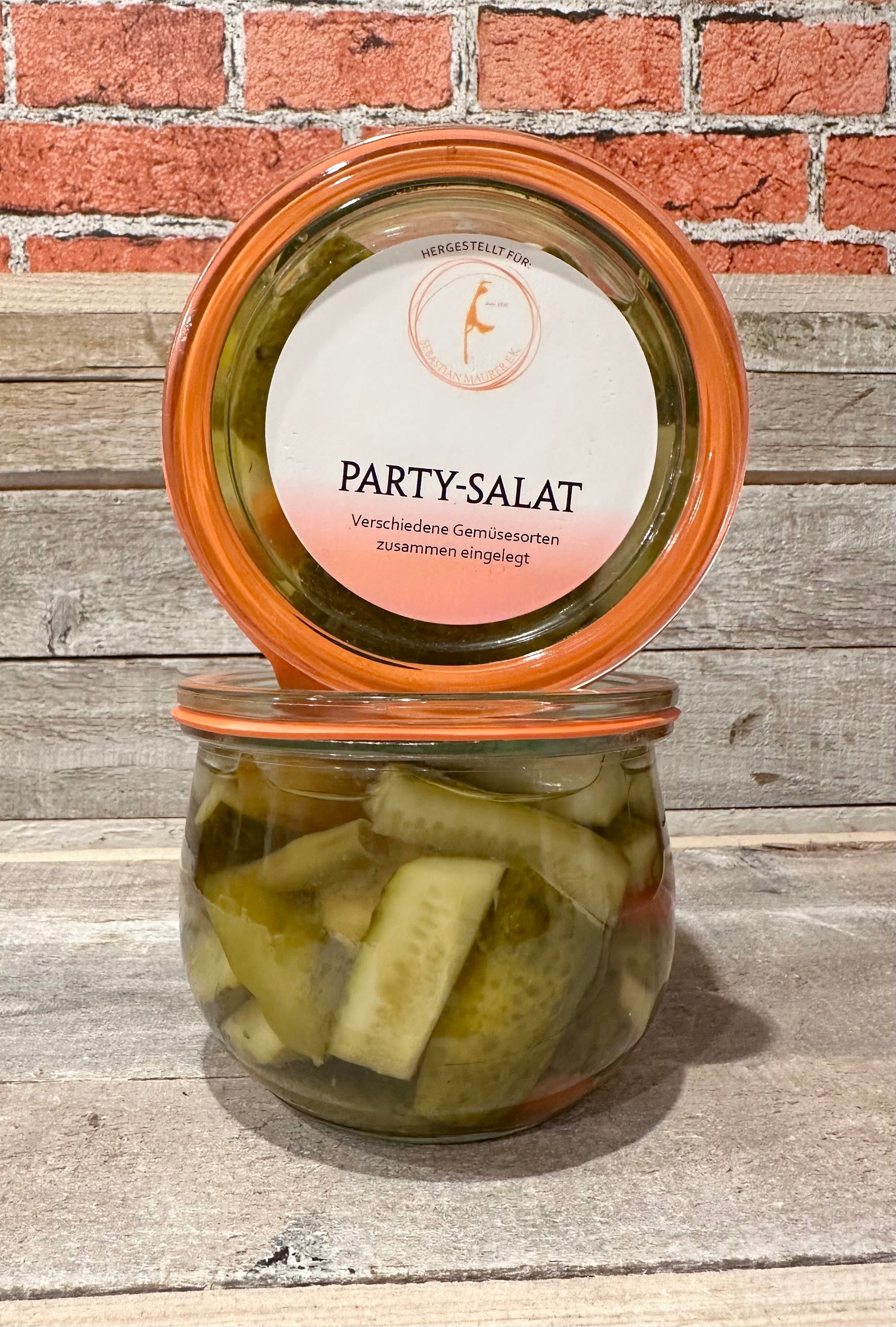 Der beliebte Partysnack für Zwischendurch. Eine Gemüsemischung aus Gurken, Blumenkohl, Böhnchen, Paprika, Möhren, Broccoli und Zwiebeln zusammen eingelegt im 580ml-Weckglas.