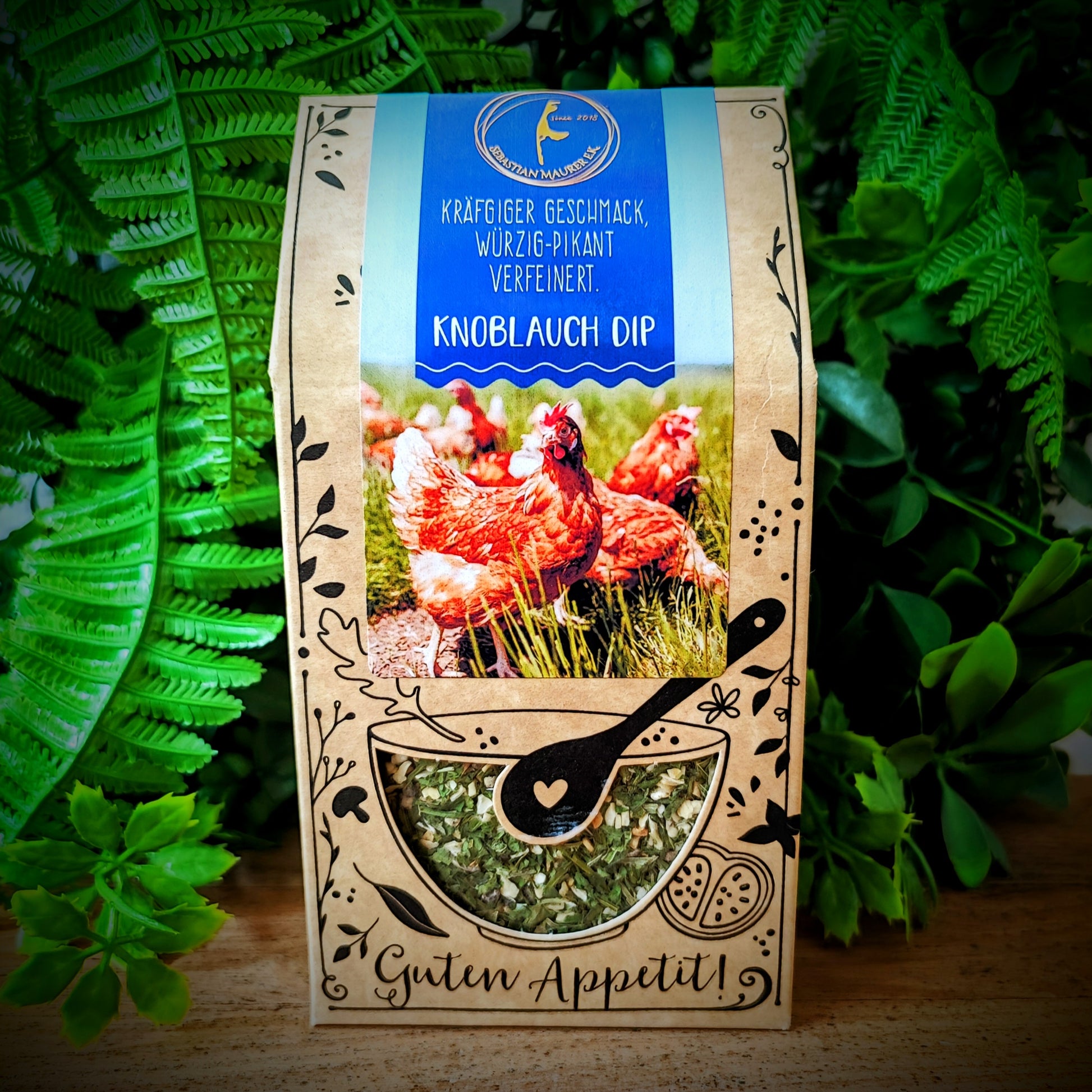 Einfach 3 Teelöffel der Gewürzmischung mit 250 g Quark, Joghurt oder Sour Cream verrühren. Wer es cremiger mag, kann den Dip nach Belieben mit etwas Milch verfeinern. Schon ist der Dip fertig und bereit zum Genießen!