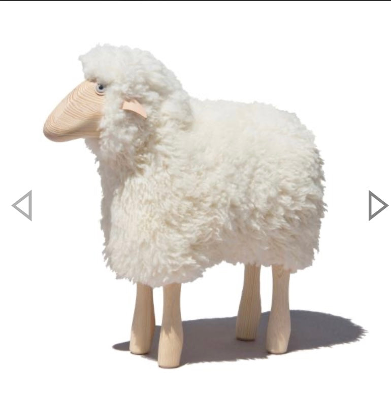 - Materialien: Kiefernholz, gelocktes weißes Schaffell, Leder