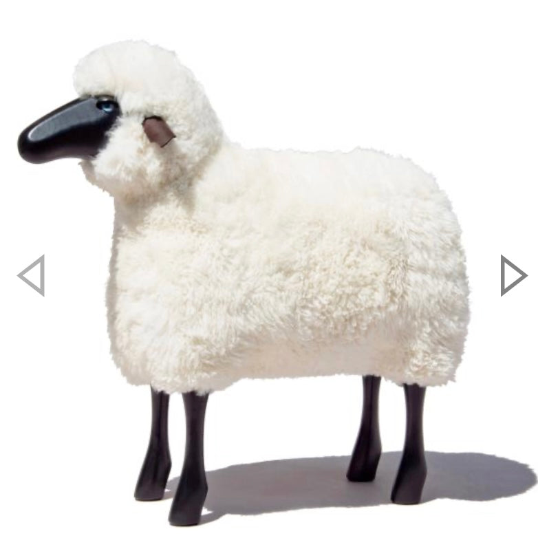 Dieses dekorative Schaf ist mehr als nur ein Blickfang – es vereint natürliche Materialien mit handwerklicher Verarbeitung zu einem stilvollen Sitzobjekt. Der Körper ist mit echtem, gelocktem Schaffell bezogen, während Beine und Kopf aus schwarz lackiertem Holz gefertigt sind. Liebevolle Details wie lederne Ohren unterstreichen den charmanten Charakter dieses einzigartigen Möbelstücks.