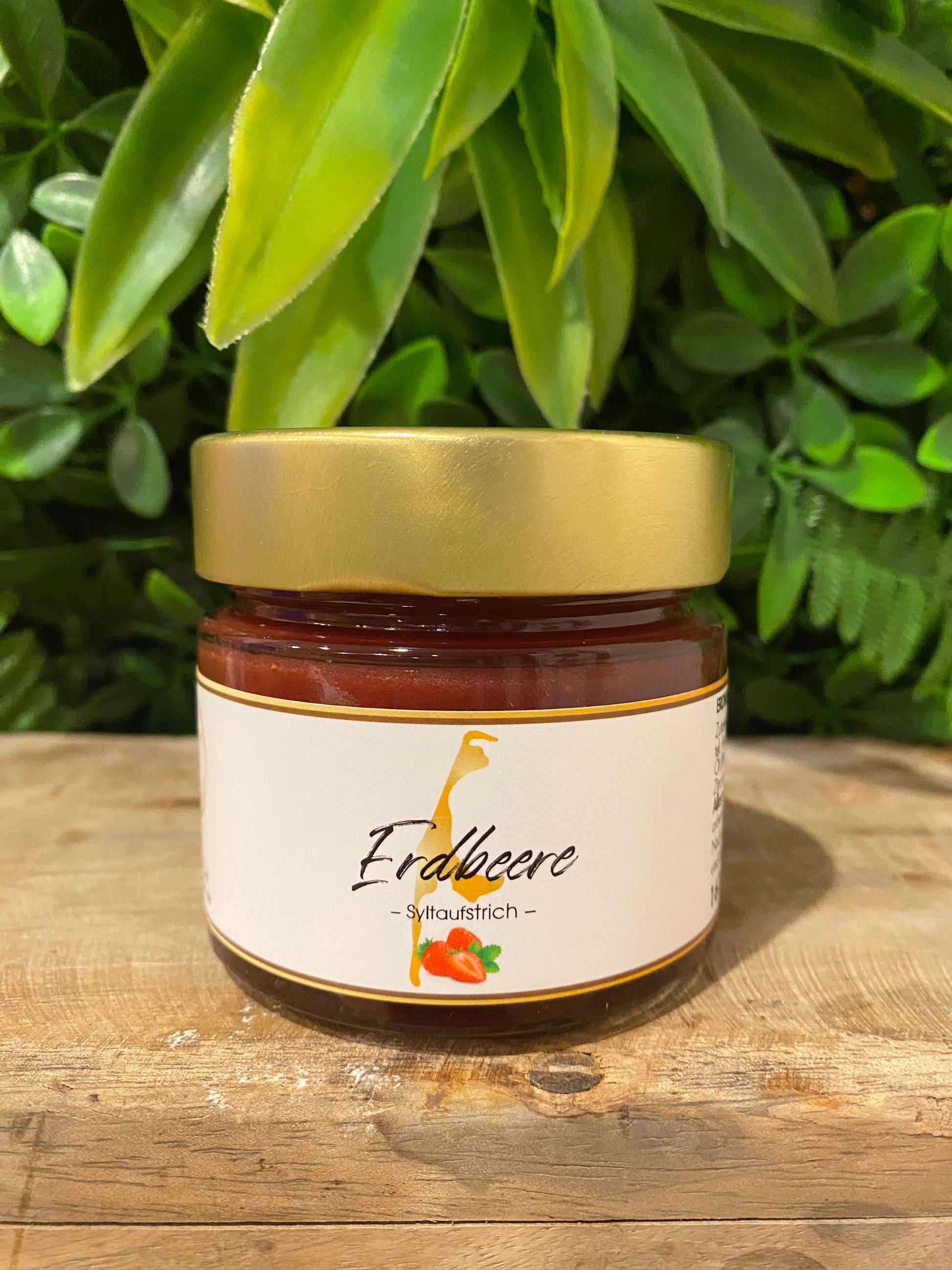 Genießen Sie den unwiderstehlichen Geschmack sonnengereifter Erdbeeren mit unserem hausgemachten Fruchtaufstrich "Sylter Erdbeere". Perfekt für den Start in den Tag oder als süße Versuchung zwischendurch.